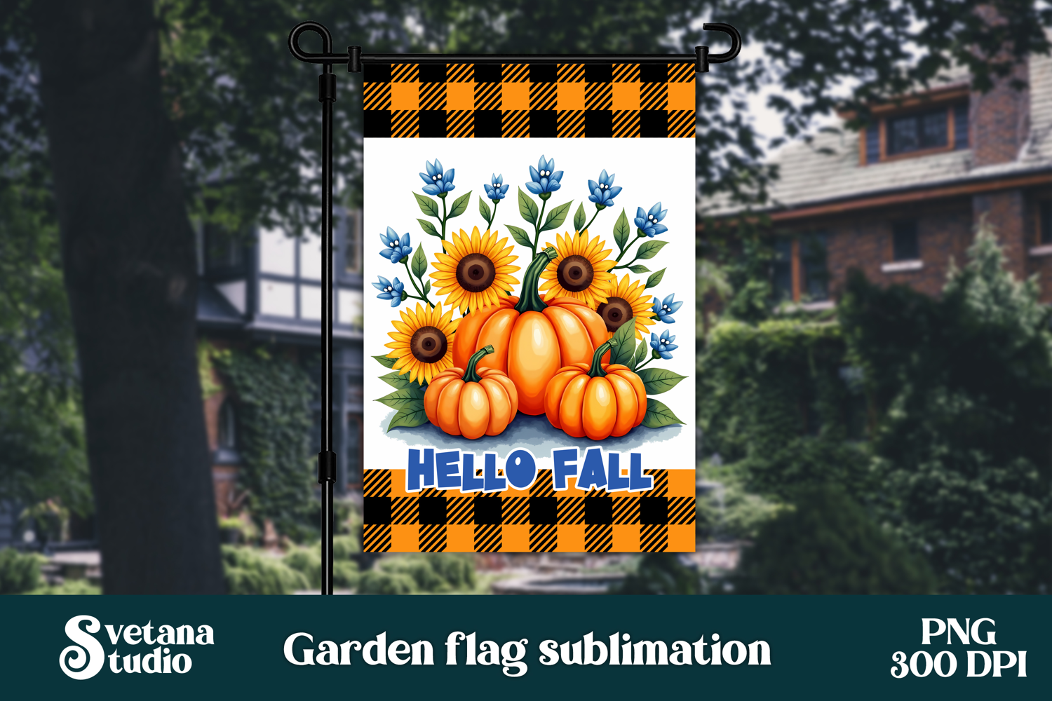 Fall pumpkin garden flag sublimation design, autumn garden flag PNG, hello fall.