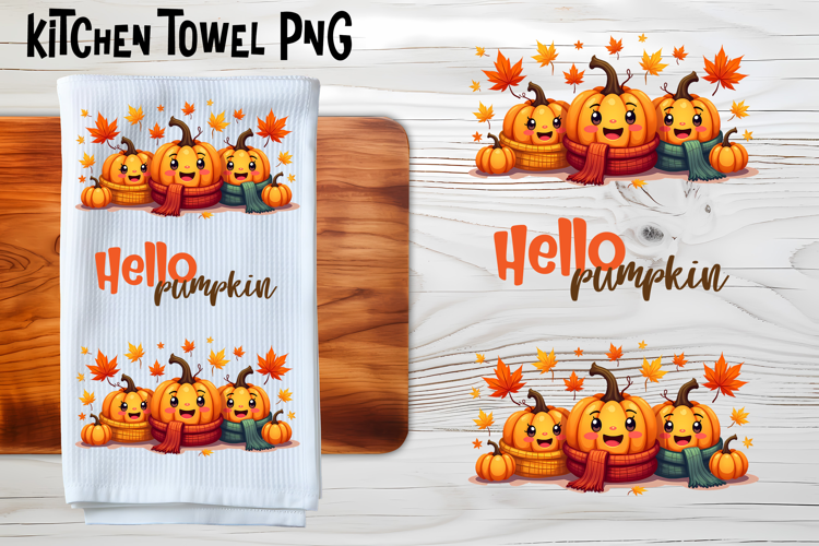 Fall pumpkin kitchen towel PNG | Thanksgiving kitchen towel example image 1