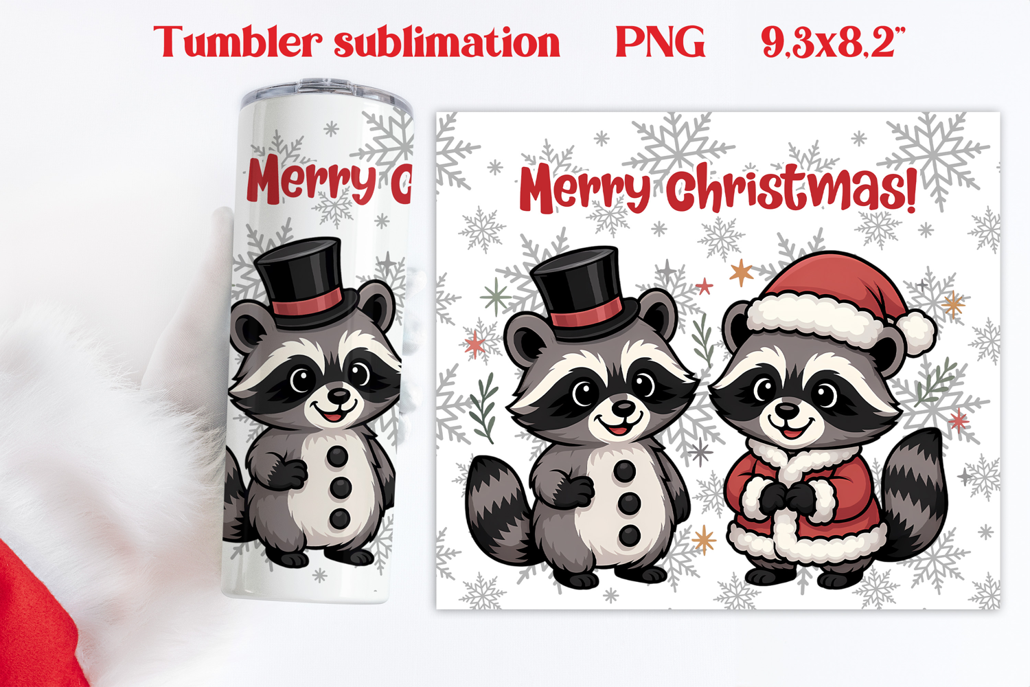 Christmas tumbler wrap | Christmas raccoon tumbler PNG example image 1