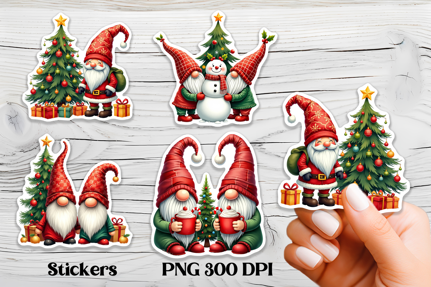 Cute Christmas Gnome Printable Stickers, Christmas Gnome PNG, Festive Holiday Stickers