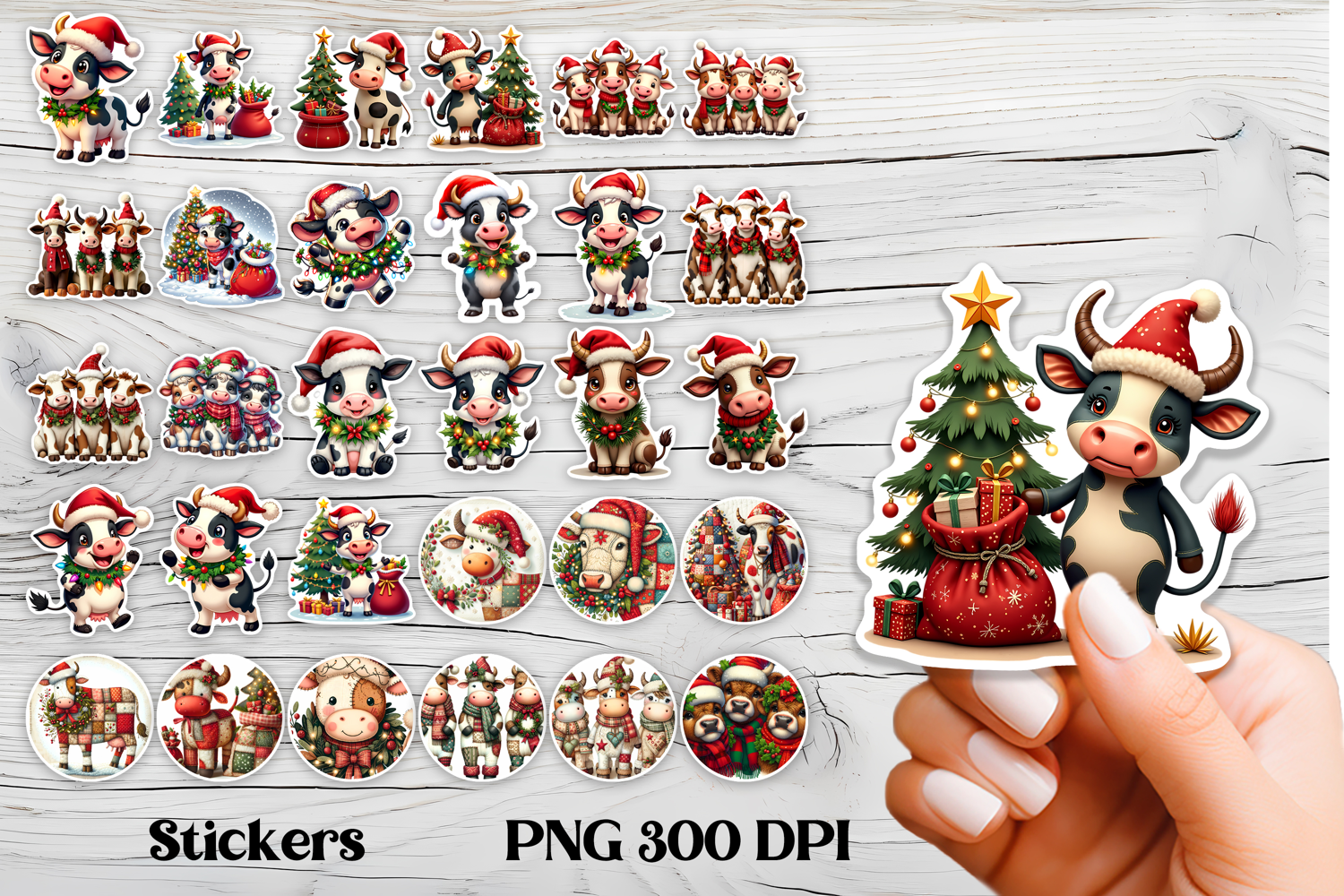 Christmas cow stickers | Cute farm animal sticker printable example image 1