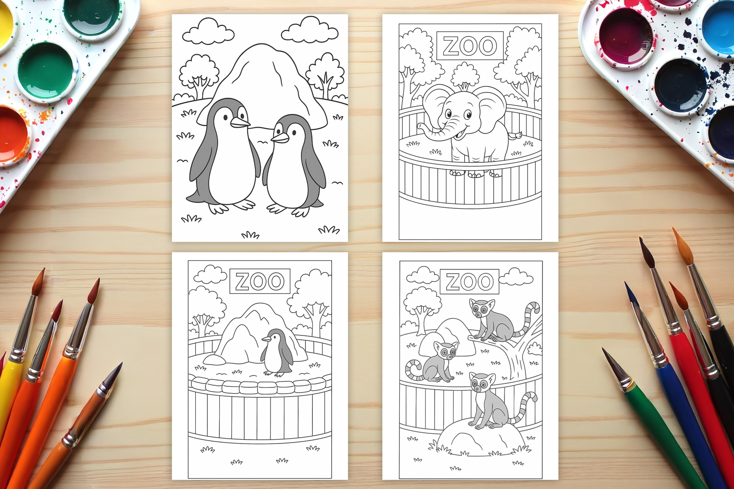 Zoo coloring page PNG | Animal coloring book for kids example image 1