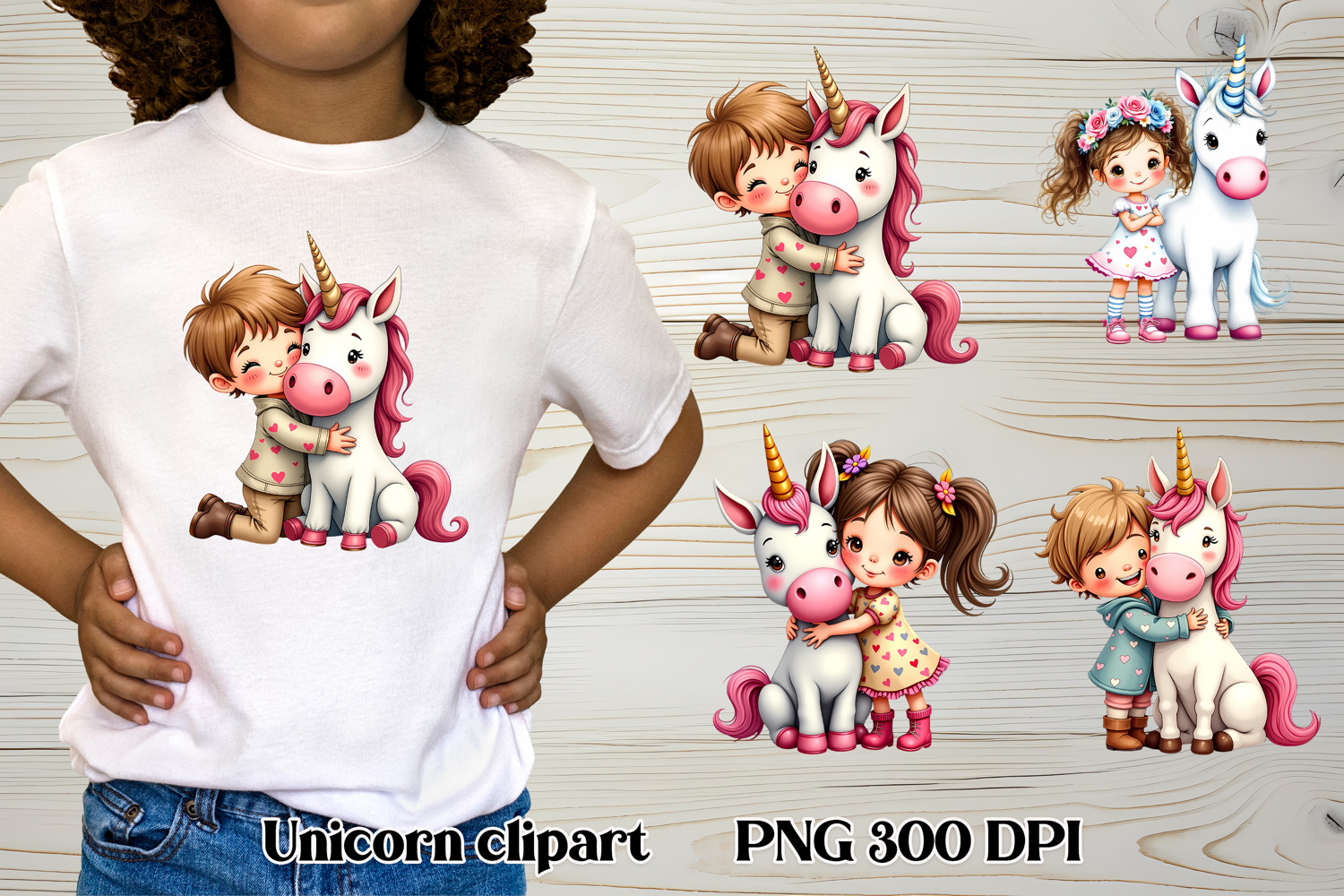 Cute unicorn kids clipart | Cute animal sublimation PNG example image 1