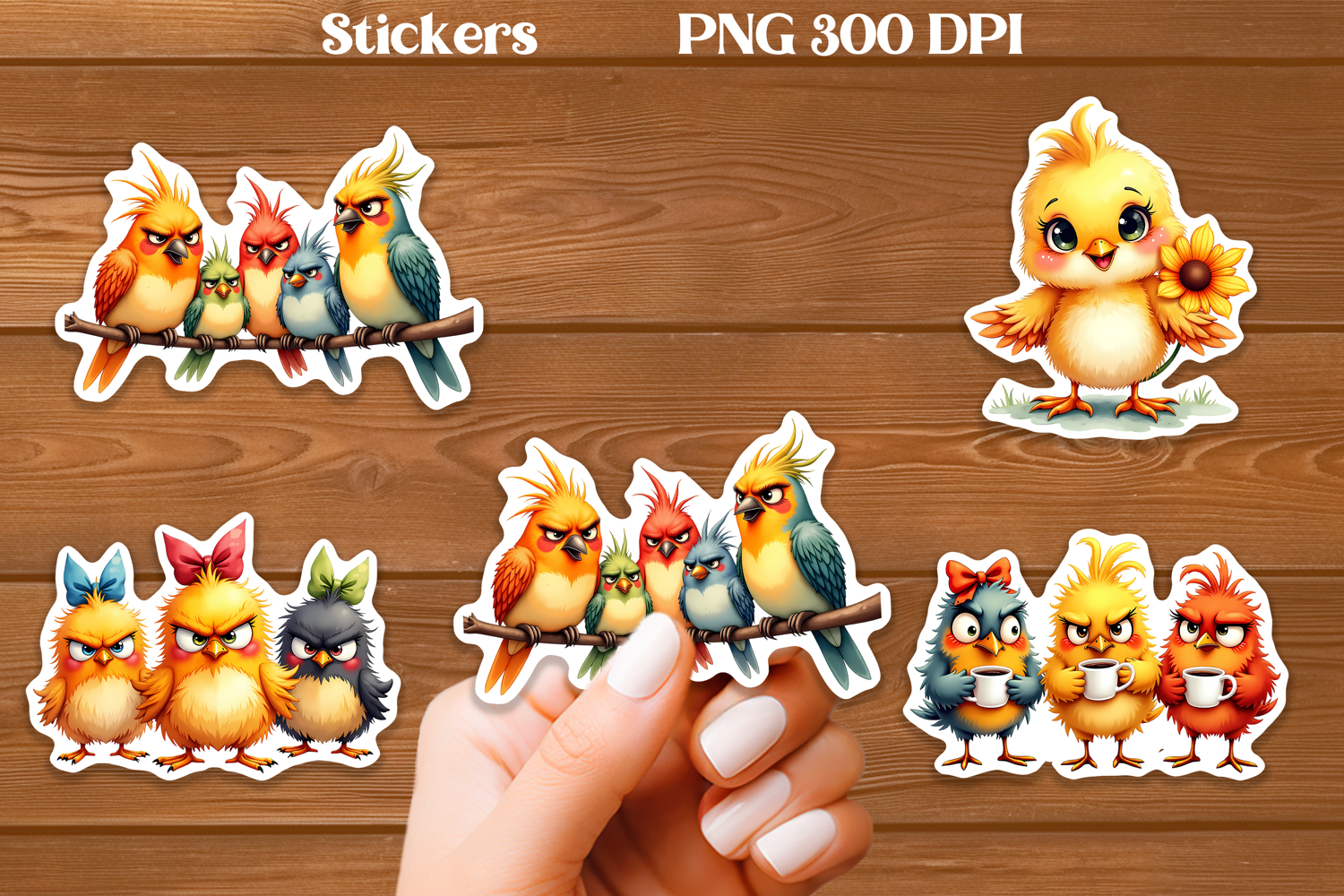 Funny bird stickers printable PNG design, animal planner sticker pack, quirky bird clipart for crafts