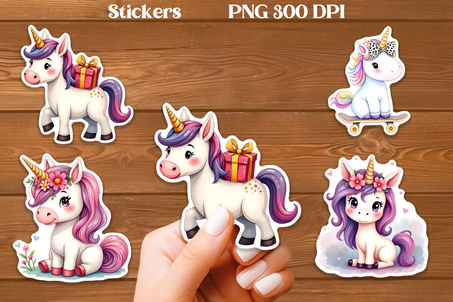 Cute unicorn stickers printable PNG, cute unicorn PNG design, printable animal stickers.