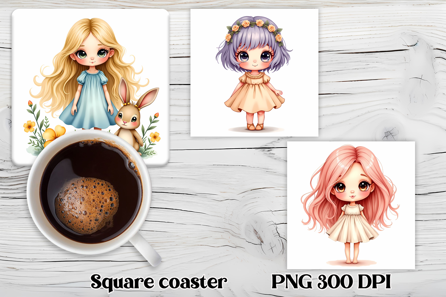 Similar Design Products to Cute doll flower square coaster sublimation | Sweet doll PNG