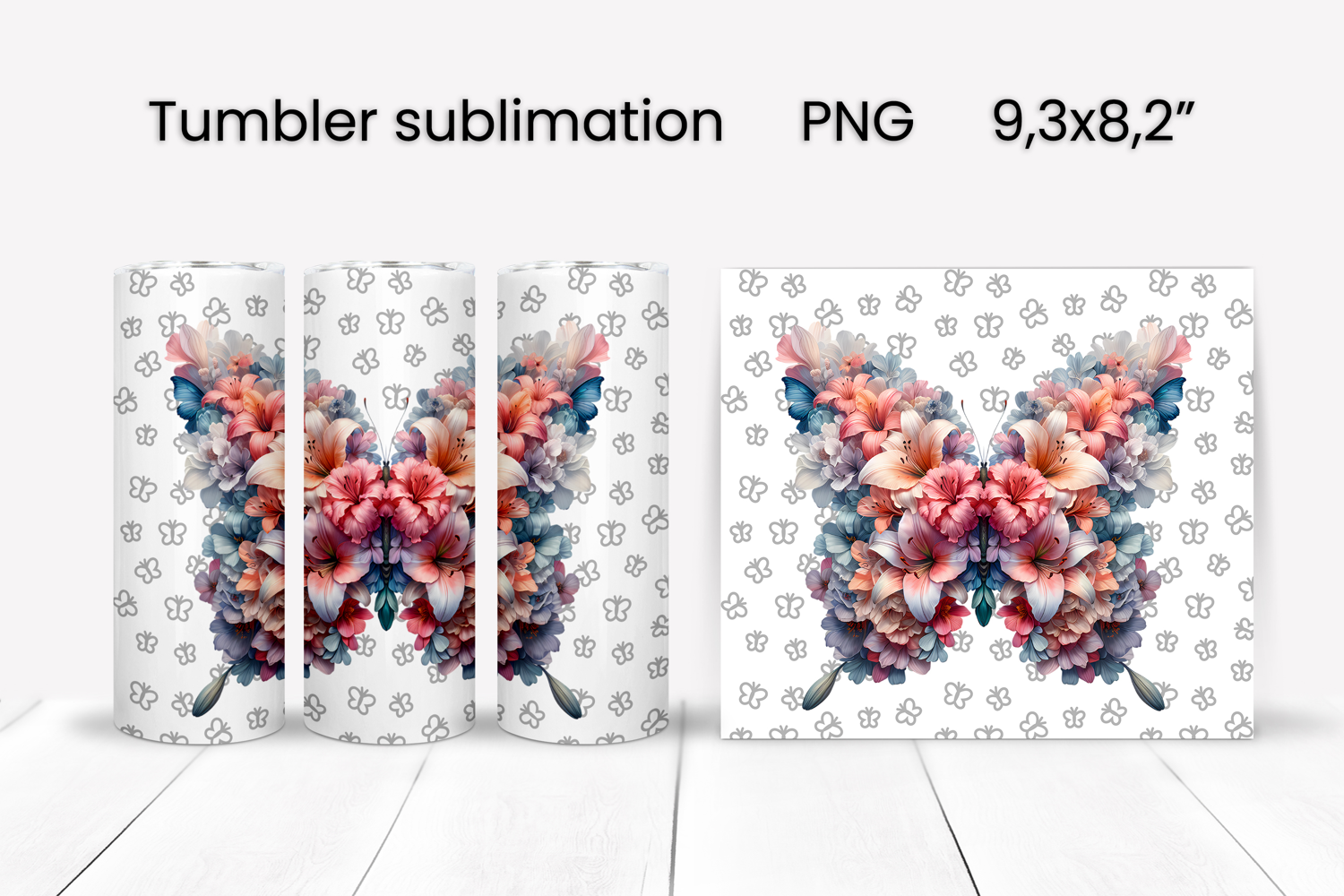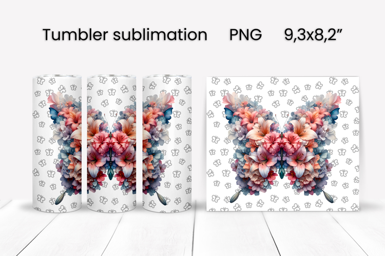 Butterfly flower tumbler sublimation design wrap 20 oz, summer tumbler wrap, floral butterfly sublimation PNG, animal tumbler design.