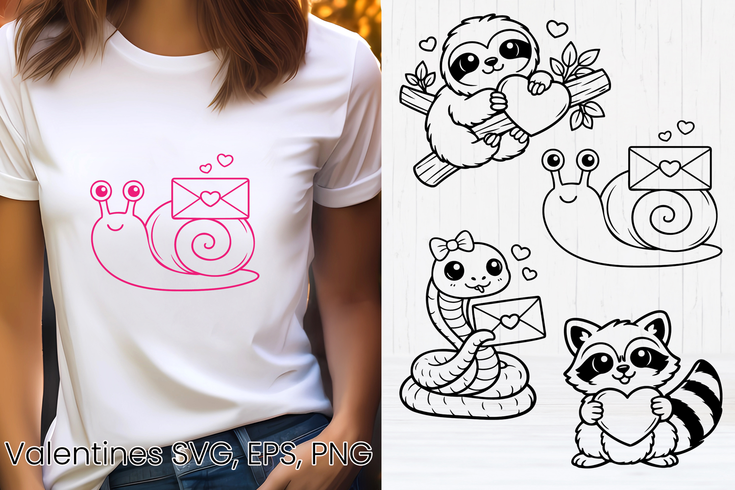 This Valentine’s cute animal SVG design is perfect for romantic and playful projects such as t-shirt designs, greeting cards and invitations, Valentine’s decor, posters, product and textile design, bags, mugs, and many more…