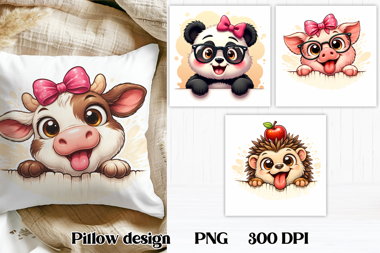 Funny animal peeking pillow | Cute animal pillow sublimation