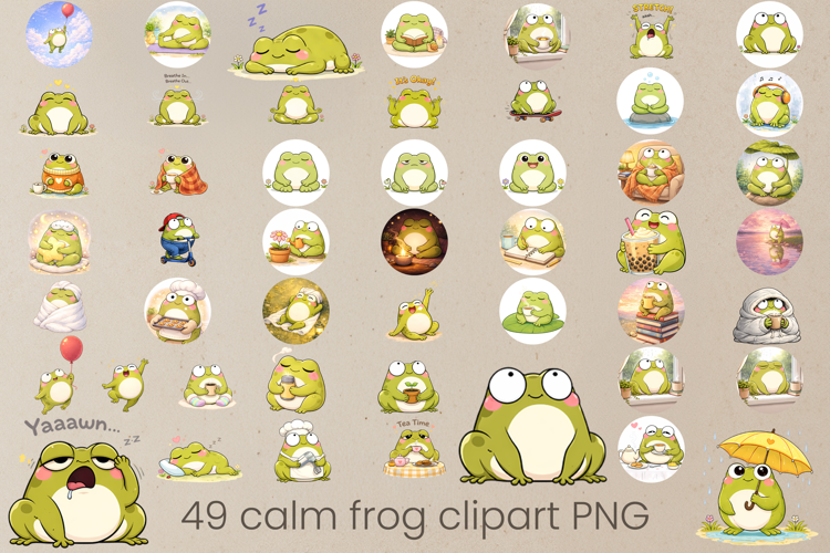 Similar Design Products to Calm frog sublimation | Cute cozy frog clipart PNG bundle