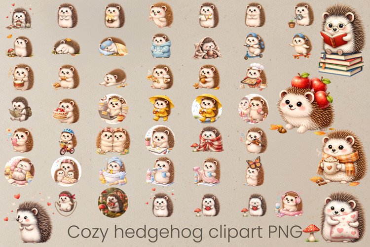 Similar Design Products to Cozy hedgehog sublimation | Cute hedgehog clipart bundle