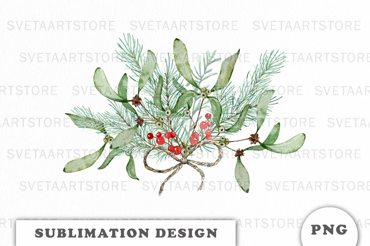 Watercolor Christmas bouquet sublimation