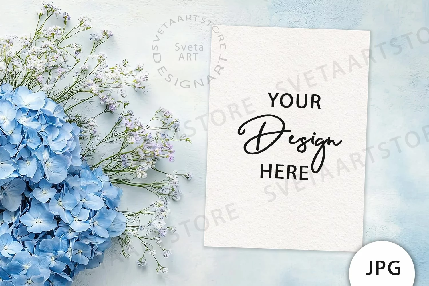 Blue Hydrangea Flowers Mockup JPG example image 1