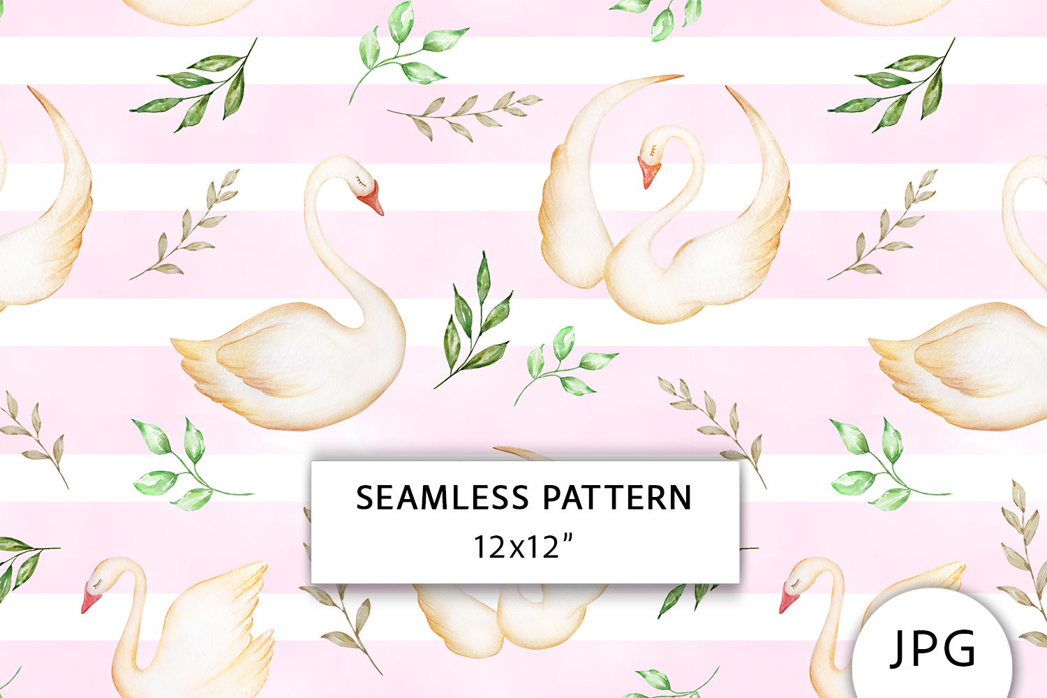 Similar Design Products to Swan Seamless Pattern, Romantic Digital Paper