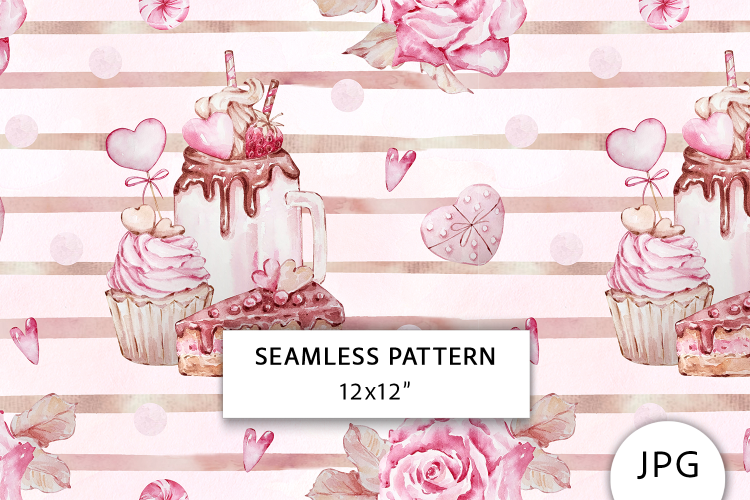 Watercolor Sweets and Dessert Digital Paper, Seamless Patterns.