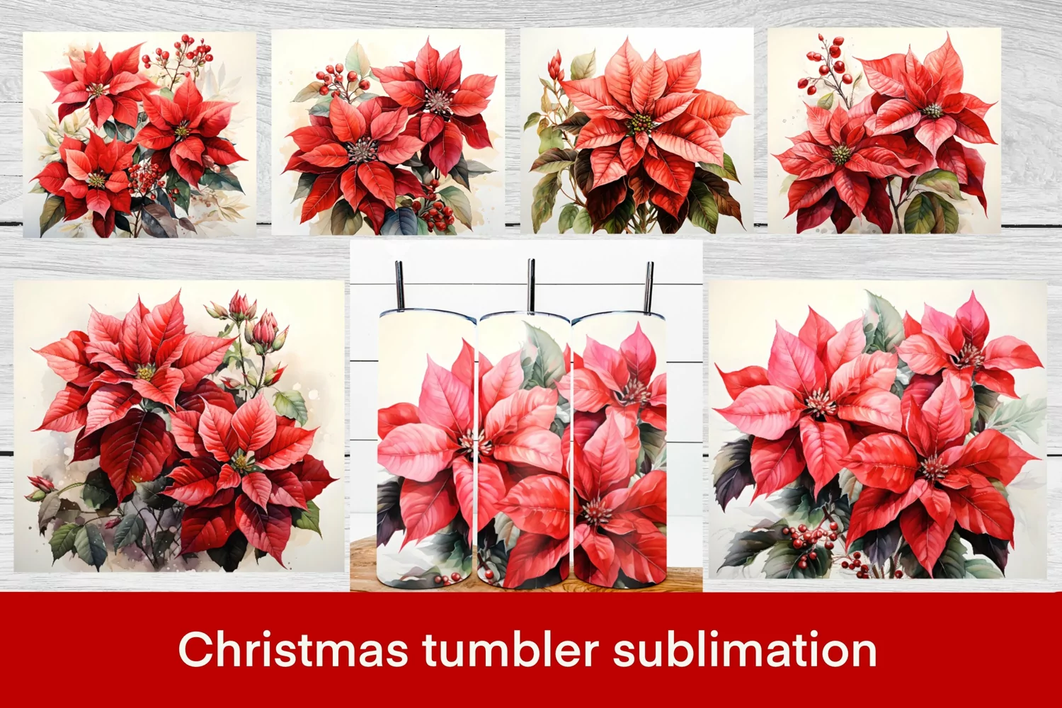 Christmas poinsettia sublimation tumbler design wrap 20 Oz, Christmas tumbler wrap, poinsettia illustration PNG, Christmas poinsettia sublimation.