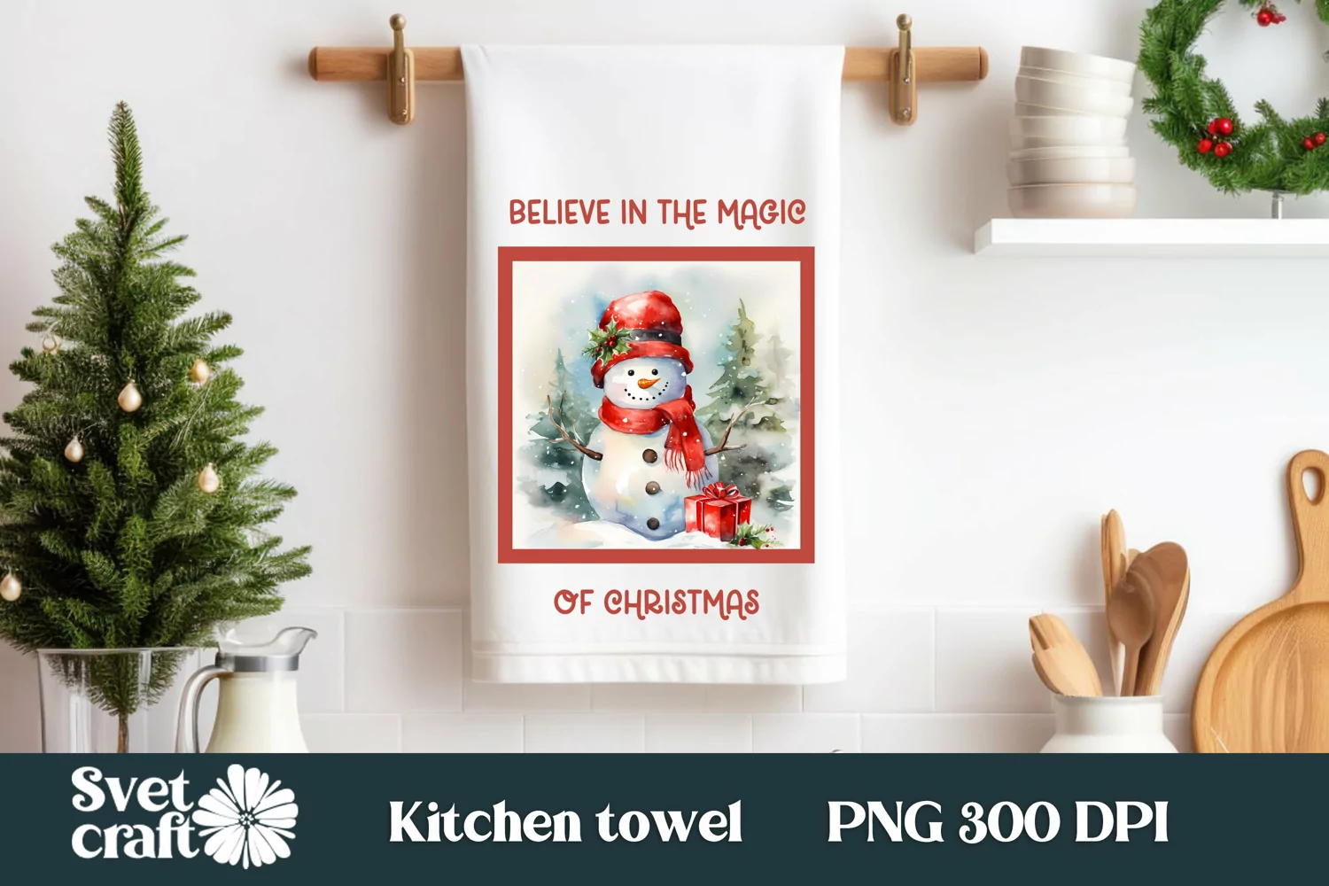 This Christmas snowman kitchen towel design comes in the following formats: