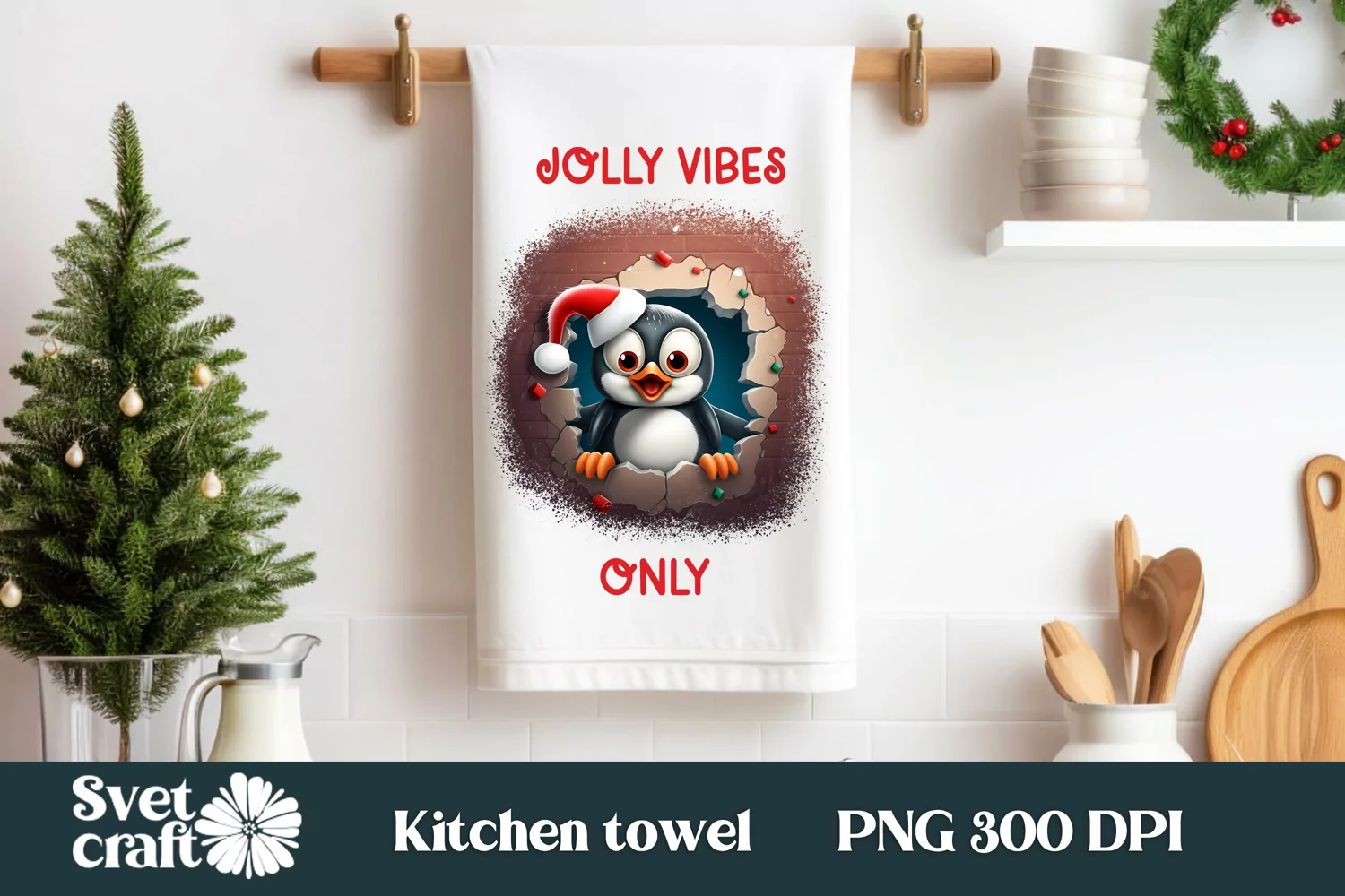 Christmas kitchen towel sublimation design, penguin kitchen towel clipart PNG, jolly vibes only.