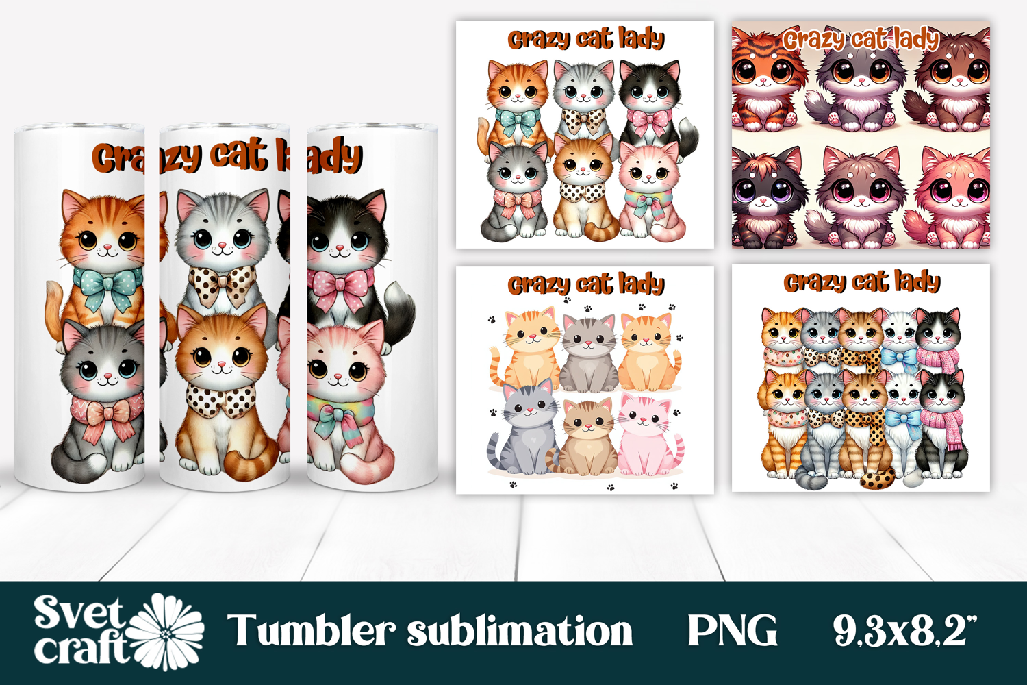 Add a playful feline flair to your drinkware with this cute cat tumbler sublimation design. Perfect for cat lovers, especially those embracing their inner crazy cat lady. Ideal for tumblers, custom gifts, or fun pet-themed products.