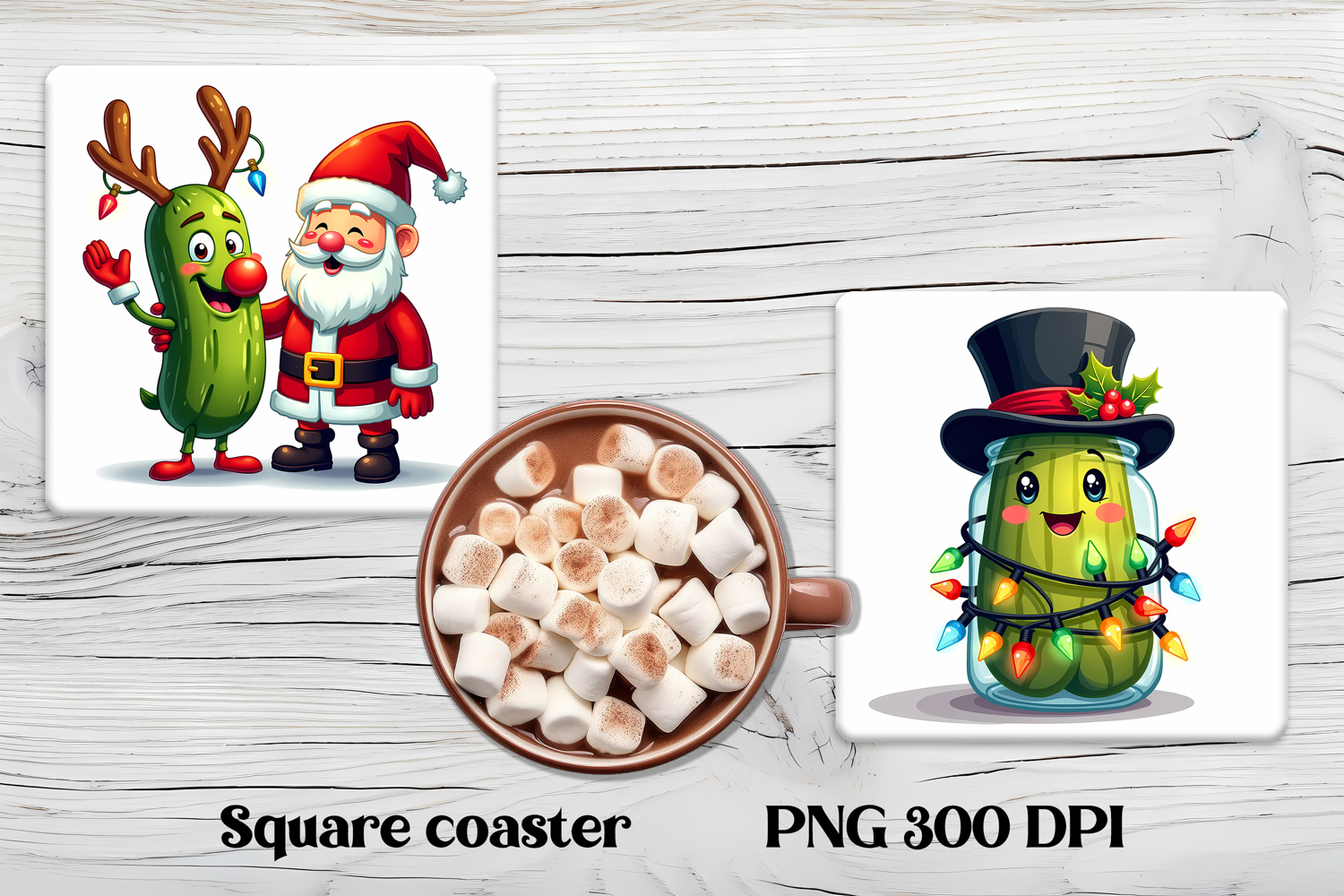 Funny Christmas Pickle Square Coaster Sublimation Design – Christmas Cucumber Coaster PNG, Holiday Humor Sublimation