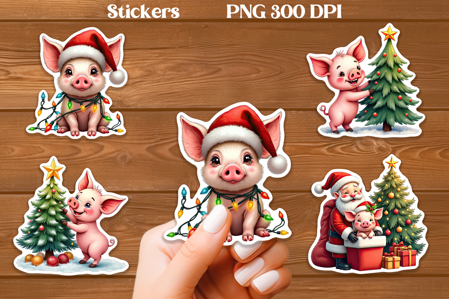 Bring warmth and holiday cheer to your creative projects with this cute Christmas pig sticker set in a charming cartoon style. Perfect for decorating planners, notebooks, laptops, scrapbooks, gift tags, water bottles, and more. A delightful choice for animal lovers and anyone who enjoys adorable farm-themed Christmas designs.