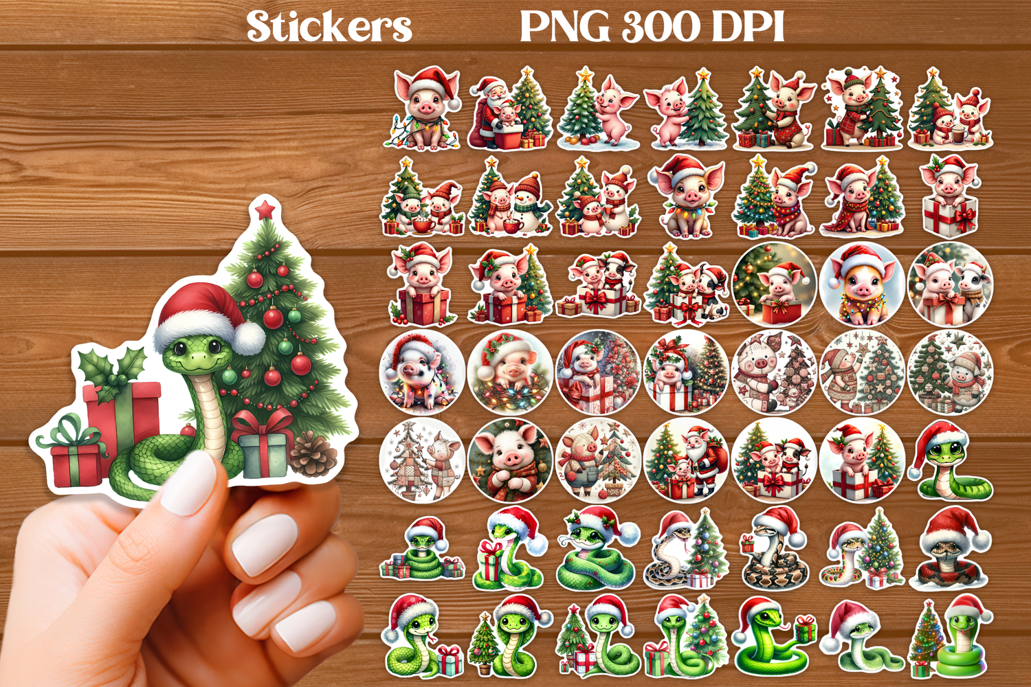 Cute Christmas Pig Sticker Printable bundle PNG Design – Christmas Farm Animal Sticker Pack, Snack Stickers Printable, Cartoon Pig Clipart PNG, Festive Holiday Sticker Set