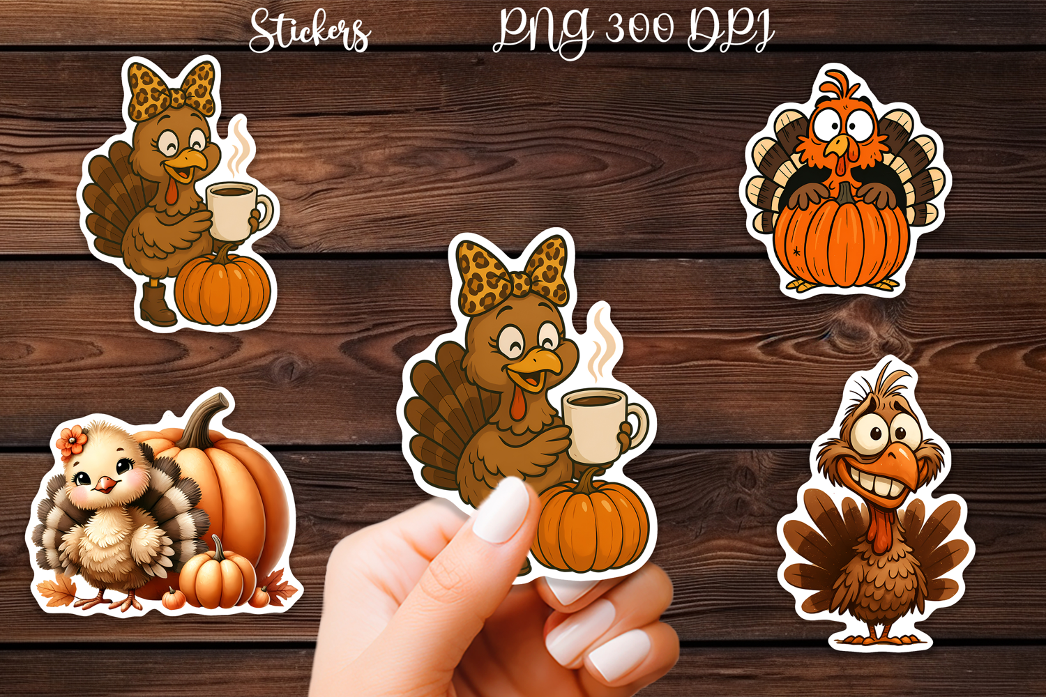 Cute Thanksgiving Turkey Sticker Printable PNG Design – Farm Animal Sticker Pack, Cartoon Turkey Clipart PNG, Festive Fall Sticker Set