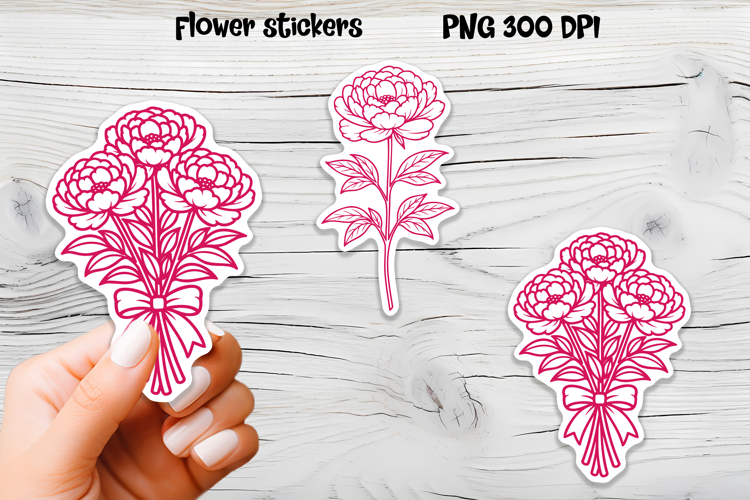 Peony flower sticker printable | Floral sticker PNG design example image 1