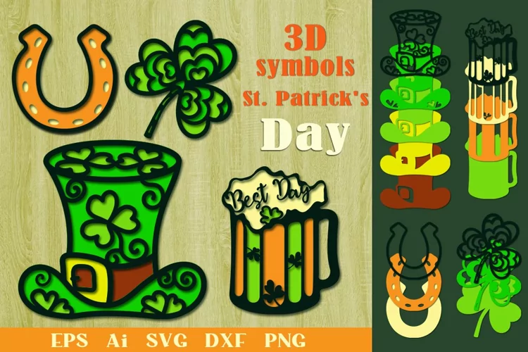 Layered Cricut Svg File Laser Cut Layered Svg St Patrick's Day Svg 3d Horseshoe 3d Shamrock Cutout File Hat 3d 3d Beer Mug