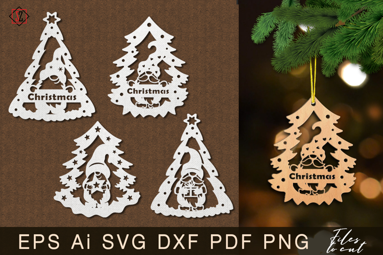 Christmas tree decorations with gnomes. Cut out. example image 1