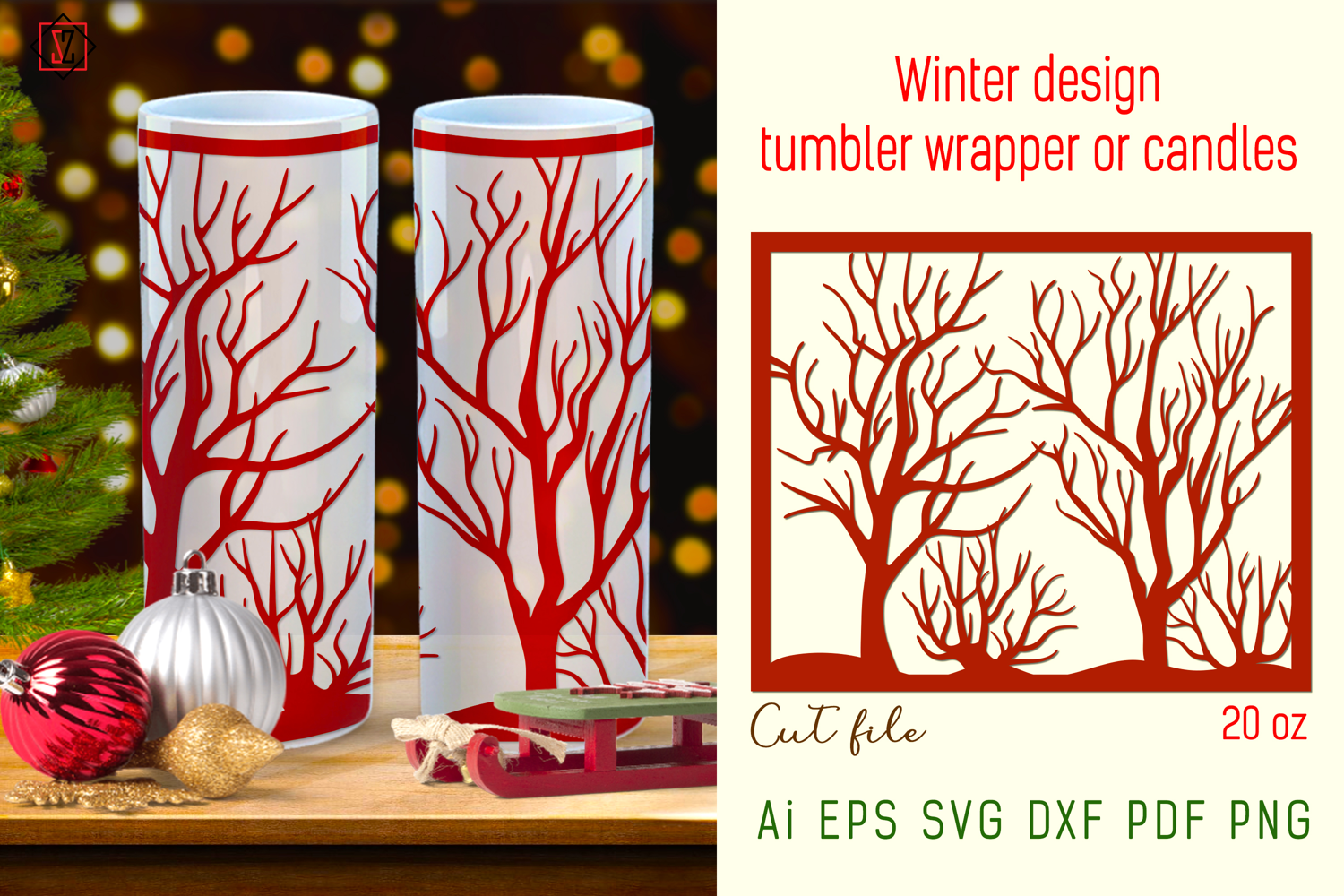 "Winter trees" Wrap for Glass or Tall Candle. Cutting File