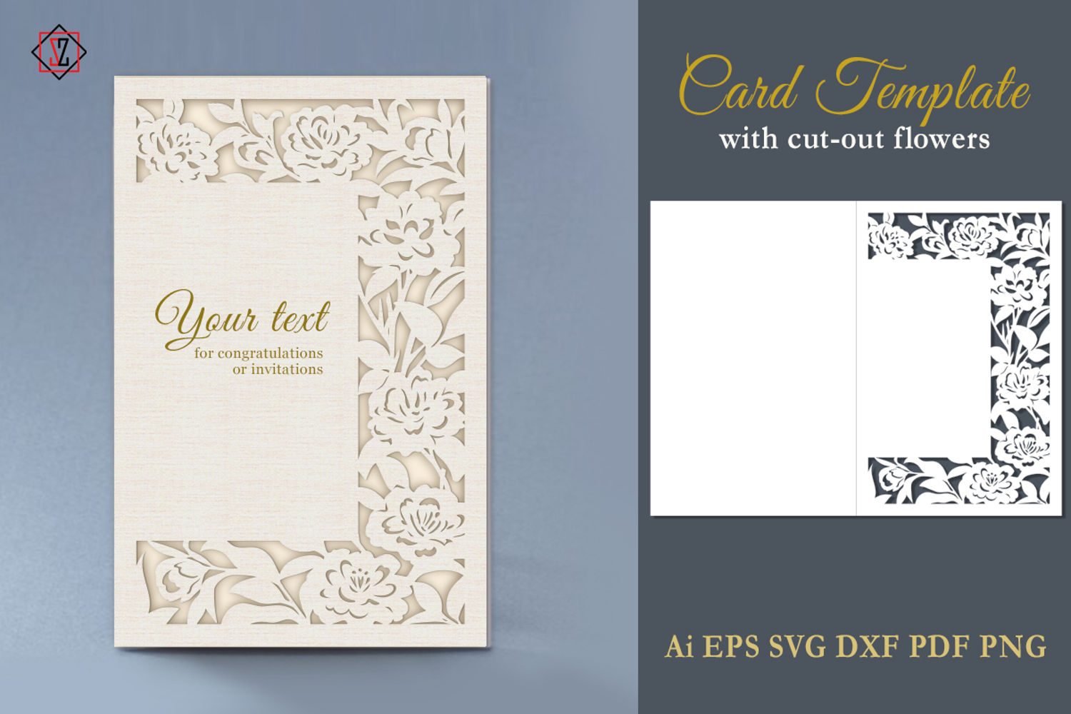 Card template with cut-out Flowers/ SVG Files for Cricut example image 1