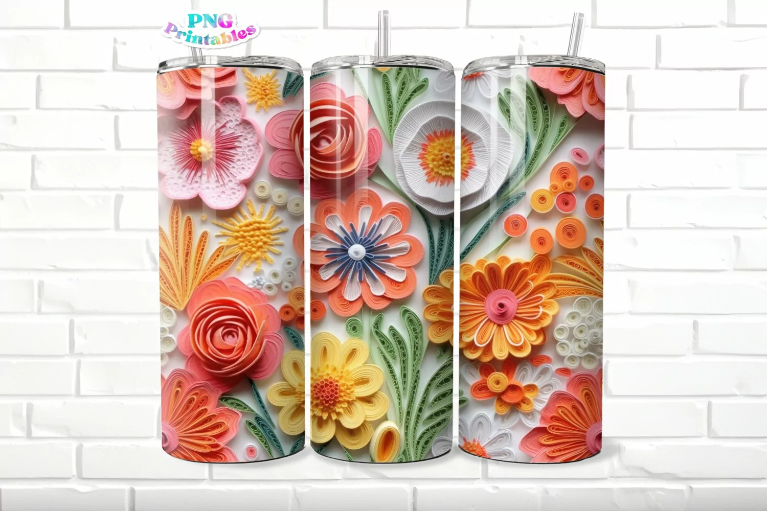 3D Floral 20 oz Skinny Tumbler png Design - Sublimation Tumbler Wrap - png File - Straight and Tapered - Digital Download