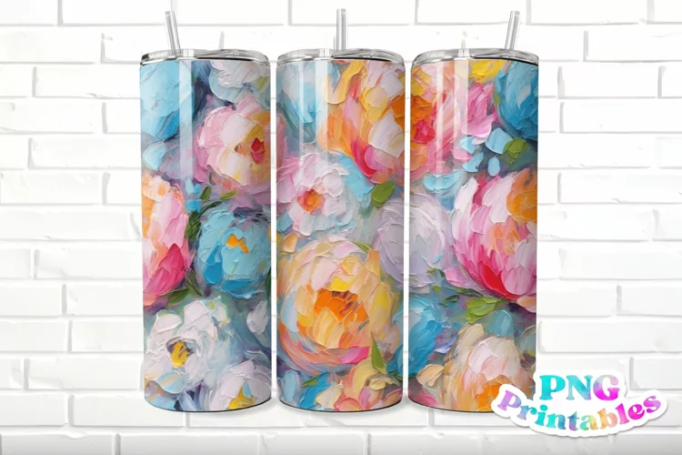 Sublimation Designs Sublimation Png Sublimation Tumbler Floral Tumbler Png 20 Oz Skinny Tumbler Straight Tumbler Tumbler Wrap Png Tapered Tumbler Wrap 3d Floral Tumbler Png Impasto Painted Floral
