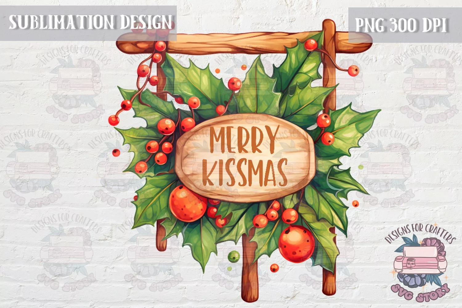 Merry Kissmas Christmas Mistletoe composition Sublimation
