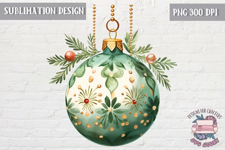 Christmas Ornament Ball sublimation Winter White Green PNG example image 1