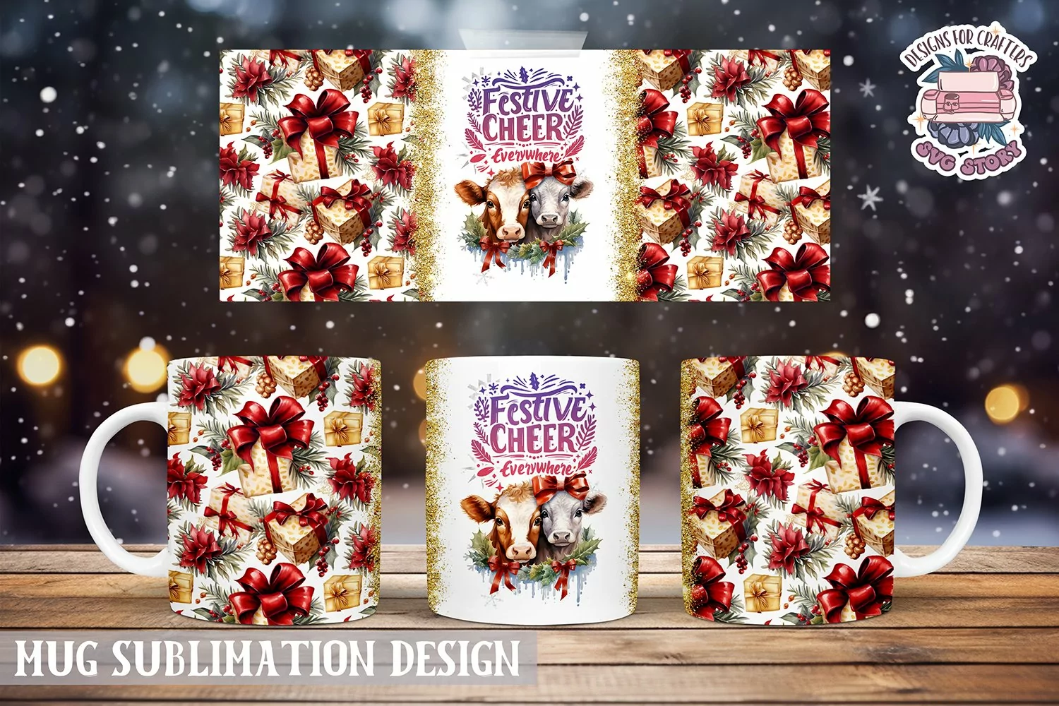 Christmas Mug Wrap Sublimation Festive cheer quote