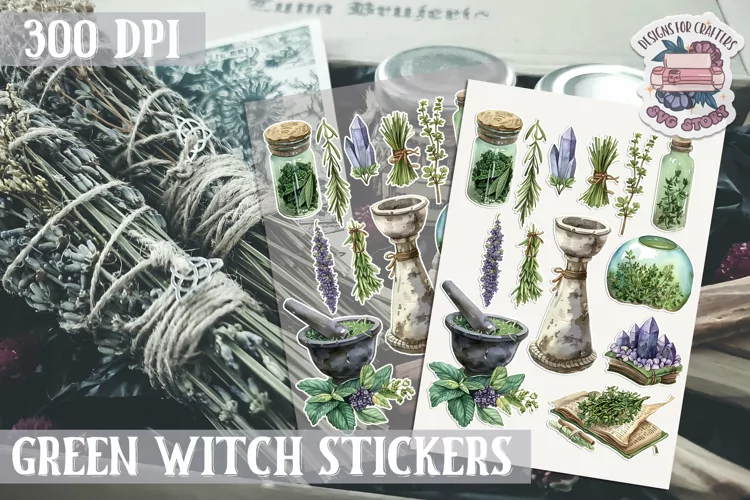 Witch sticker Sheet Green Magic Herbs Props Wicca Halloween example image 1