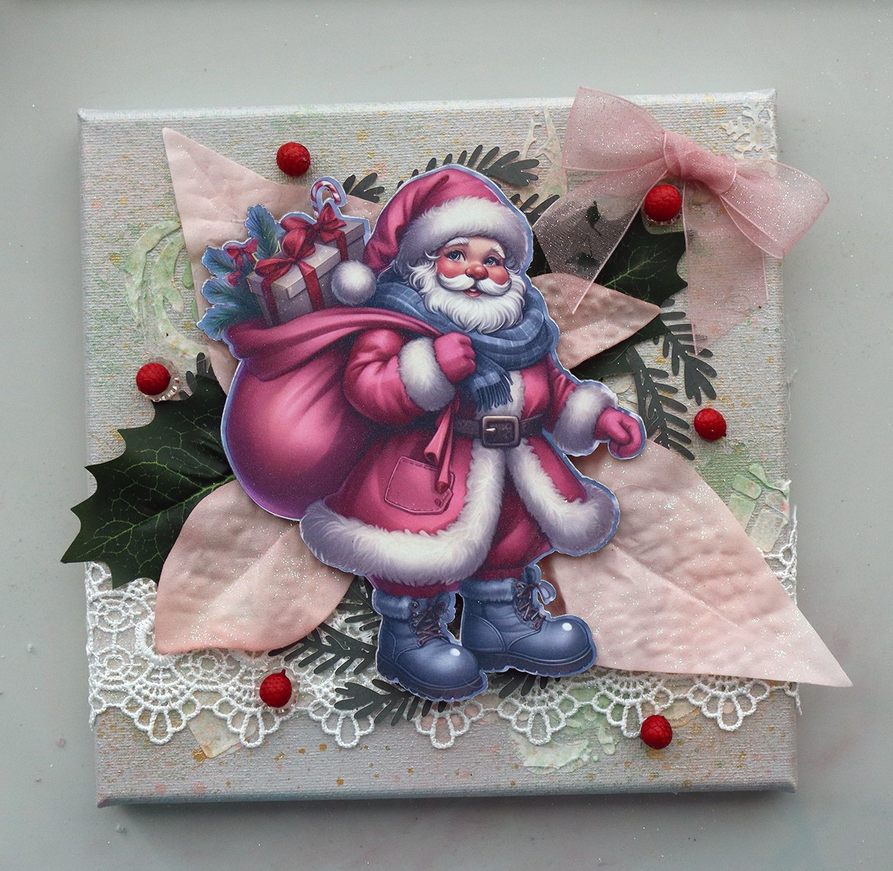 The image was printed to matte sticker paper and cut using the Cricut maker, then mounted on several pieces of cardboard to make a thick "chip board" cut from the silhouette of the image. It made a very nice main dimensional design element to my Christmas craft decor.