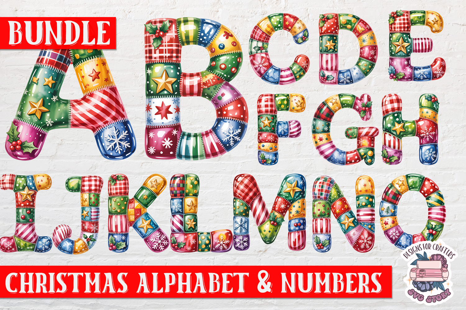 Christmas Patchwork Alphabet bundle Sublimation Number