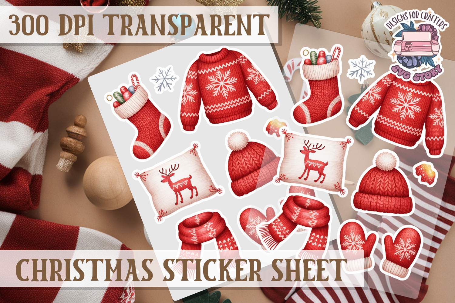 Christmas Watercolor Sticker Sheet Winter Cute Holiday PNG