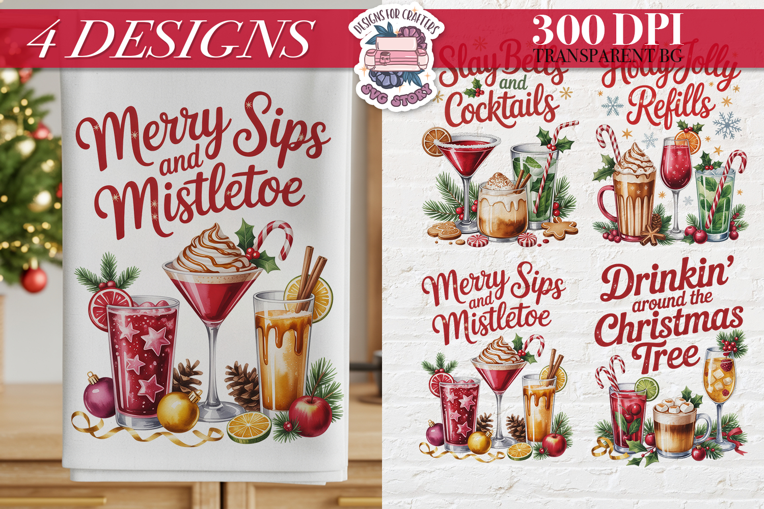 Christmas Cocktail Towels Clipart Sublimation 4 PNG