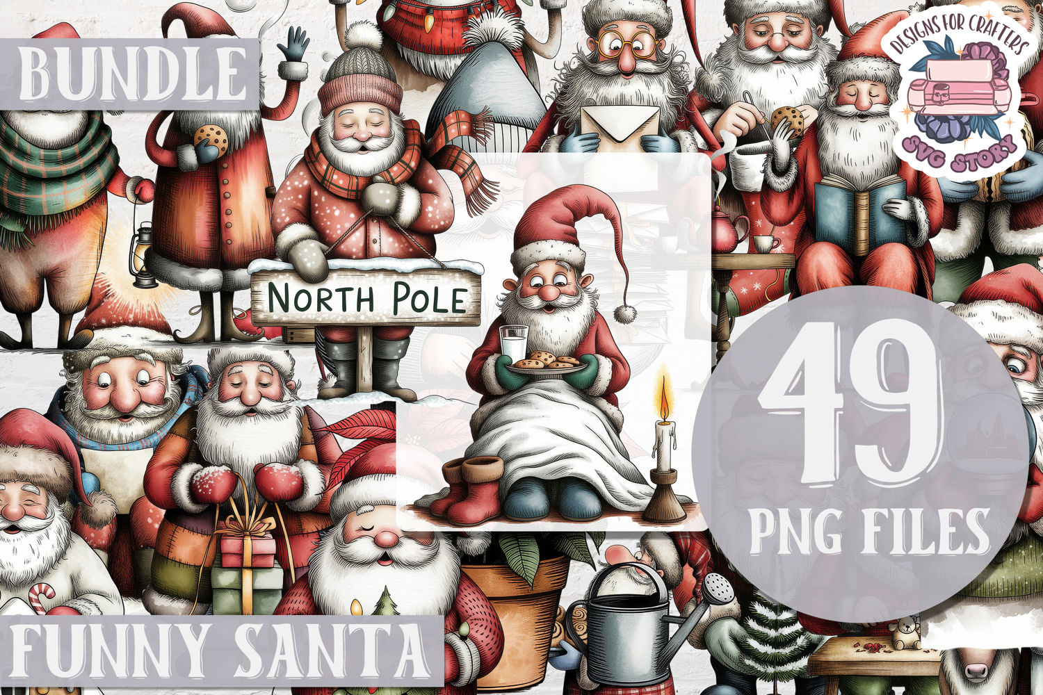 Funny Christmas Santa Clipart Bundle Sublimation 49 PNG