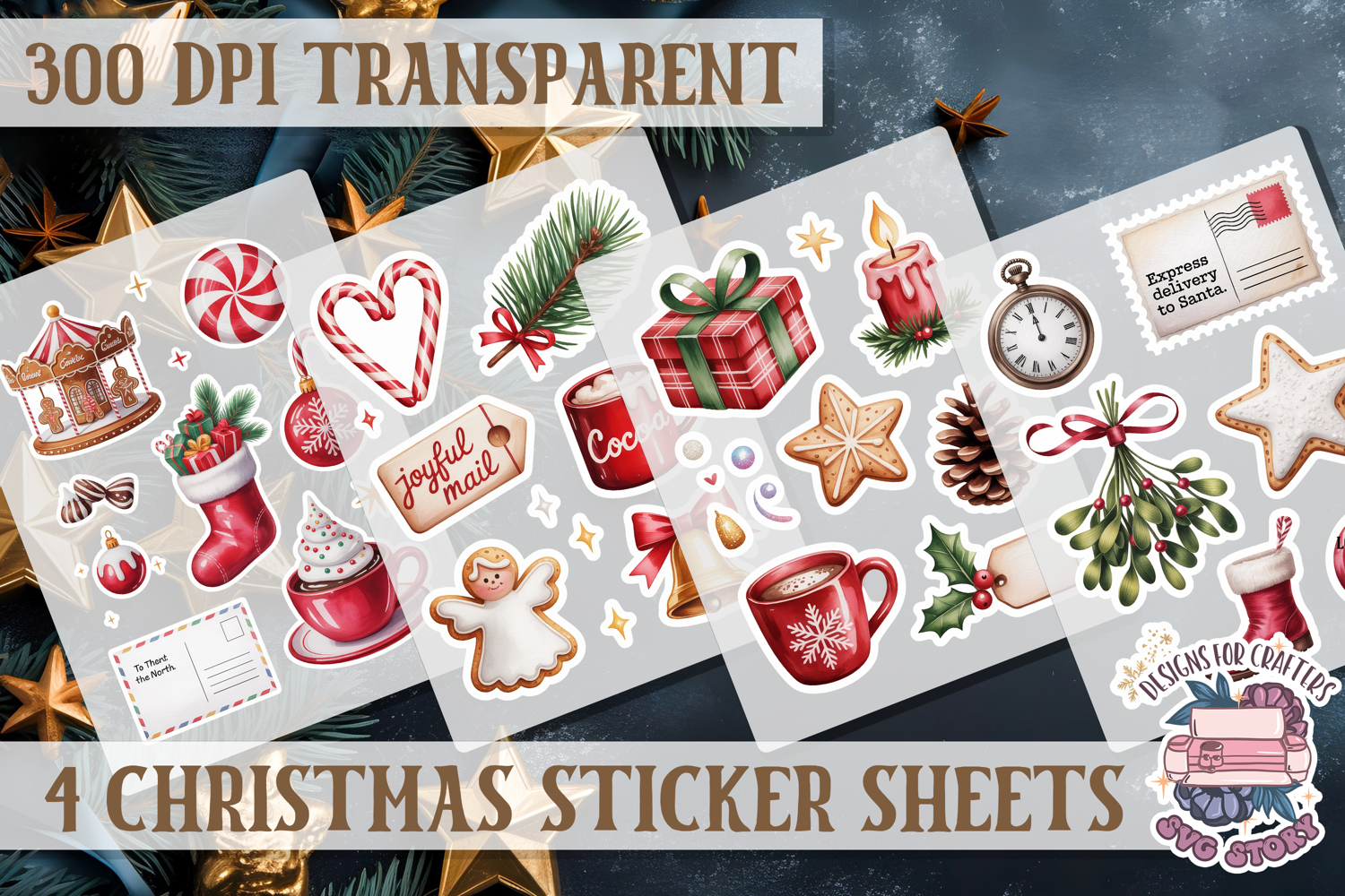 Christmas Watercolor Sticker Sheet Winter 4 PNG example image 1