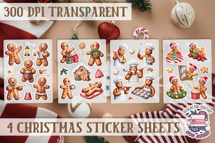 Christmas Gingerbread mans Watercolor Sticker Sheet Winter example image 1