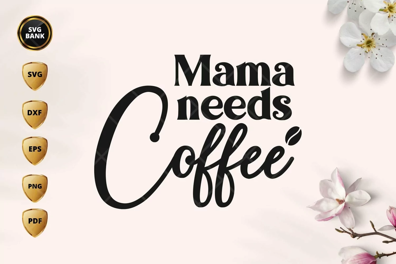 Mama needs coffee svg. Best to make a wall decoration, T-shirt, Print on a mug, pillow, etc