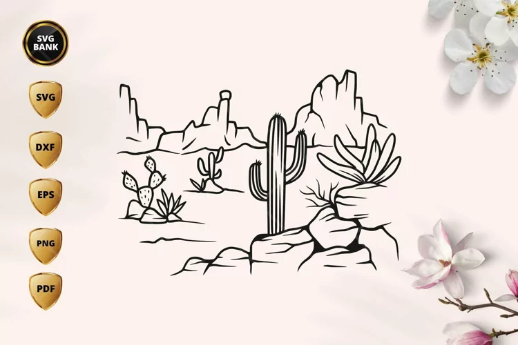 Desert Cactus Scene SVG. Best to make a wall decoration, T-shirt, Print on a mug, pillow, etc
