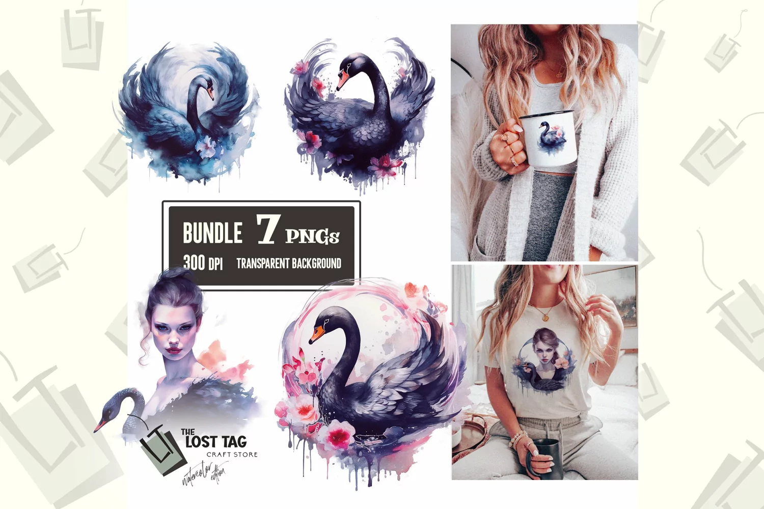 Black Swan Clipart Bundle Sublimation PNG example image 1