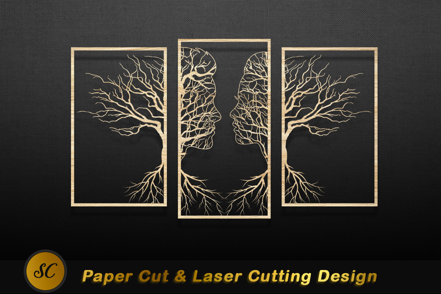 Celebrate unity and organic growth with this Rooted Connection Triptych, crafted for paper cutting and laser engraving. Featuring two human profiles formed from intertwining tree branches and roots, framed by flanking trees, this three-panel design blends symbolism, nature, and emotional depth. Perfect for spiritual decor sets, relationship-themed gifts, or artistic craft collections.