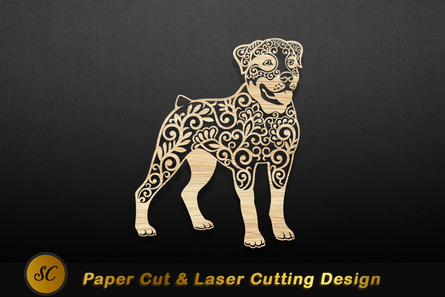 Ornate dog silhouette wood carving Rottweiler Laser cut example image 1